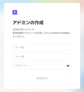 最初にアクセスすると管理者アカウントを作成できる「アドミン作成」画面が表示されます。アドミンアカウントを作成します。(例、admin / admin)