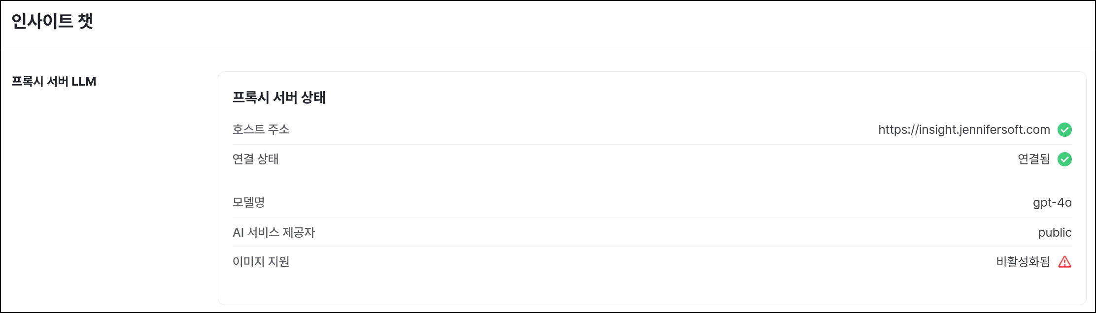 설치가 완료되면 설정 > 인사이트 챗 메뉴에서 아래와 같이 연결 상태를 확인할 수 있습니다.